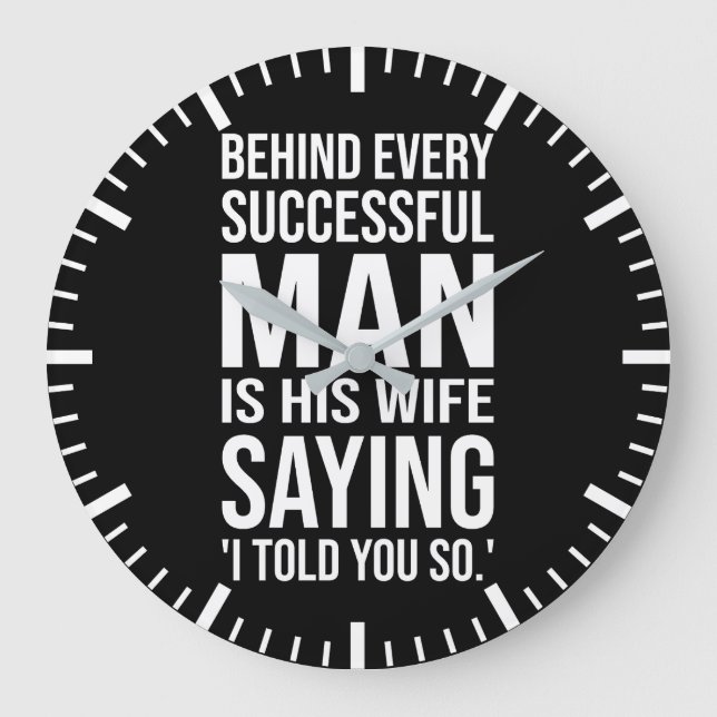 Behind Every Successful Man Is Wife Say I Told You Large Clock