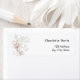 White background decorated with beige, cream coloured wildflowers. Personalise and add your name and address. Black letters.