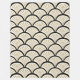 Beige and black art-deco abstract geometric flower seamless pattern on a white background.