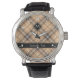 Beige and brown tartan design. Seamless pattern. Custom text and monogram.