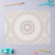 This mandala design glows with soft tones of beige, cream, and ivory, creating a serene and elegant visual flow. The circular pattern radiates from the centre with petal-like shapes and layered symmetry, resembling seashells or gentle ripples in sand. Subtle gradients of warm neutrals give the design depth and movement, while maintaining a soothing and harmonious balance. Both refined and calming, this composition evokes tranquillity and timeless beauty in a minimalist palette.