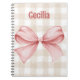 Beige and pink gingham with watercolor bow notebook