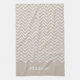 Beige And White Squiggly Chevron Zigzag With Name Tea Towel