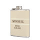 Beige Wedding flask with brown lettering customised name and date. Purchase a flask for all the groomsmen as a wedding party gift. You can customise with groom, groomsmen, best man or make up your own funny message to add to this one of a kind flask.
