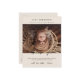 A soft beige baby birth thank you postcard designed with a clean, timeless layout. This design features a warm neutral background paired with elegant dark brown typography for the headline and gentle taupe text for the body, creating a calm and balanced look. The minimal layout highlights the baby photo beautifully, making it a meaningful and stylish way to share gratitude with family and friends.