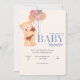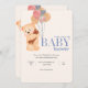 Beige Blue Cute Bear Baby Shower Invitation