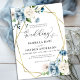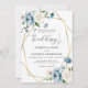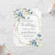 Beige Blue Elegant Floral Gold Frame Wedding Invitation