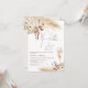Bohemian floral themed birthday invitation featuring two natural tones beige and brown floral arrangements with pampas grass, and a champagne glass. This bohemian themed 40th birthday invitation is fully editable and can be used for any age or occasion.