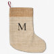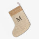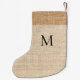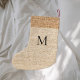 Beige burlap monogram modern small christmas stocking