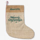 Beige burlap name retro Merry Christmas Small Christmas Stocking