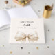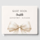 A beig, cream background colour. Decorated with a large bow. Personalise and add your name, text.