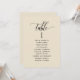Help your guests find their table with this elegant beige cream modern seating plan cards with guests names. Double sided cards so guests can look from both, front or back for their names. Clear space all around giving you the liberty to use clips or punch hole for hanging displays, or use table holder/frame. Beige cream background and black text. Modern hand written calligraphy details. Several colour options. Have all table numbers in same colour or mix colours according to your event's colour theme. Part of our "Earth Tones Event Signs and Products" collection with a variety of coordinating products available, including table number cards and menus.