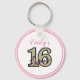 Cute beige glitter numbers and pink glitter in a pink-white circle. Sweet 16. Custom Monogram
