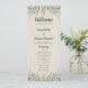 Bring a touch of natural elegance to your ceremony with this warm beige linen wedding program card. Designed with soft watercolor greenery along the top and bottom edges, featuring eucalyptus, olive, and fern details, it creates a calm, graceful atmosphere that pairs beautifully with rustic or garden weddings. The refined texture adds warmth and charm, while the layout includes editable text for your names, date, and ceremony details. Simple yet sophisticated, this design makes a timeless keepsake for your guests to cherish.