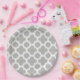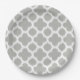 Beige Grey White Retro Ikat Quatrefoil Pattern Paper Plate