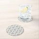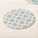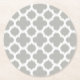 Beige Grey White Retro Ikat Quatrefoil Pattern Round Paper Coaster