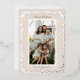 Send winter holiday greetings to family and friends with this real metallic foil Christmas card that features classic traditional style typography and personalized text, your custom portrait orientation photo, plus room for a longer message on the back. The warm beige background is an elevated and on-trend choice when paired with silver foil. The festive yet classic border motif of evergreen and holly branches gives an air of timeless holiday cheer to the design.