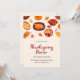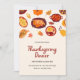 Gather your loved ones for a warm Thanksgiving dinner with this charming illustrated invitation. The design features a delightful array of Thanksgiving foods and autumn elements in vibrant shades of orange, yellow, and red, set against a soft beige background. The playful yet elegant illustration style perfectly captures the festive spirit of the holiday, making this invitation a lovely choice for your Thanksgiving gathering. It’s sure to set the tone for a memorable evening of gratitude and good company.