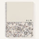 Monogrammed notebook features a stylish dainty floral pattern in a modern beige linen and grey colour palette. The top features a simple plain beige linen background with custom monogram initials presented in a modern script. The bottom features a stylish dainty floral pattern in a linen, grey with hints of light pastels.