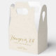 Hangover kit wedding favour box, whimsical minimalistic modern, customisable gold script typography. The light beige printed linen texture background adds a touch of an organic feel and classic elegance. Other colours are available.