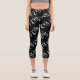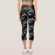 Beige Marbled Om Scattered Black Background Capri Leggings