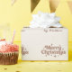 A light beige, cream coloured background. Mocha muted brown coloured text. Text: Merry Christmas, and Handmade with love with a retro 70's style font.