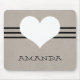 Sweet and charming Modern Heart Mousepad featuring a beige background and a cute heart and striped border. This cute and girly mousepad will add style to any workspace. Customise with the text of your choosing. Click on "Customise" to find additional personalisation options.