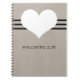 Sweet and charming Modern Heart Notebook featuring a beige background and a cute heart and striped border. This cute and girly notebook will allow you to keep notes and reminders handy with style. Customise with the text of your choosing. Click on "Customise" to find additional personalisation options.