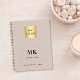 Beige background colour. Black text. Personalise and add your logo, monogram initials, name and a title year 2025 (or any year). Your logo both on the front and the back. Space for your website address on the back.
