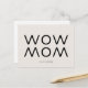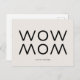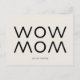 This Mother's Day postcard presents a strikingly minimalist design with a playful twist on words. The bold, black typography spells out "WOW MOM," with the 'M' and 'W' mirroring each other, creating an eye-catching visual palindrome. This clever design captures the surprise and admiration that the phrase 'wow' conveys, doubling as a reflection of the word 'mum' to celebrate the wonder that mothers inspire.