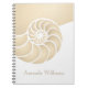 A custom nautical notebook design featuring a beige nautilus shell and personalised name. Replace the sample name shown in the design template with your desired name or other text.