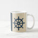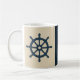beige navy blue ship wheel Family Name est. Year Coffee Mug