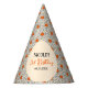 Reddish orange and beige daisies floral design birthday party hat. Perfect party decor for groovy theme birthday.