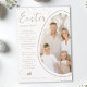 Celebrate Easter with a modern, playful twist with this customizable card designed by Destei. Your photo is placed inside an egg shape, intentionally cropped at the edge for a fun, asymmetrical effect that makes the design feel dynamic. White and beige borders frame the egg, while “Easter Greetings” appears at the top, leaving plenty of space underneath for a personal message. A cute lying-down bunny silhouette adds another festive touch and a personalizable area lets you include a name and year. Beige dot accents decorate the edges and continue onto the back, giving the card a subtle, stylish pattern that feels both elegant and cheerful.