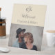 A modern beige, cream coloured background. Personalise and add your photo, monogram initials, names. Grey text.