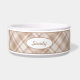 Lovely plaid pattern in beige colour scheme. There is also an oval shape banner that has a personalizable text area for the name of the pet. The font is a nice script font in beige colour.