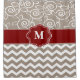 Beige Red Swirl Chevron Monogram Shower Curtain