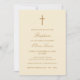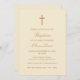 Beige Script Elegant Cream Baptism Invitation, please personalise as desired, using the online personalisation template before ordering. This pretty invitation features both the cross and the stylish elegant text in a golden shade of beige on a cream colour background.
