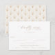 Elegant script, wedding RSVP cards with meal choice option. Monochromatic beige typography with faux gold art deco pattern backing and white backgrounds.