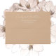 Beige coloured mailing envelope for your wedding invitations and features your name and address printed on back flap in a modern script style. Personalise your envelope by editing and replacing name and address with your own. Edit further to change font style or colour. Select your envelope size that fits your invitation.