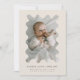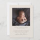 Whimsical and sweet birth announcement card featuring hand drawn photo frame of squiggly wavy line. Beige background.