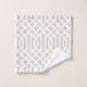 Beige and white trellis patterned bath towel set personalised with your family monogram or other text in a rustic laurel branch. Use the design tools to choose any background colours, edit the text fonts and colours or upload your own photos to create a one of a kind design. The perfect touch for your modern farmhouse bathroom decor!