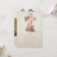 Beige Watercolor Style Pastel Floral Cross-Shape Christian Wedding Invitation Cards with Back Photo and QR Code.