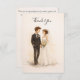 Beige Whimsical Watercolor Romantic Couple Wedding Thank You Card