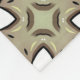 "Two images of decorative towels with geometric floral patterns in beige, white, and black. The first shows hung towels; the second, a folded washcloth."