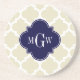 Beige, White Moroccan #5 Navy 3 Initial Monogram Coaster