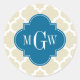 Beige Wht Moroccan #5 Peacock 3 Initial Monogram Classic Round Sticker
