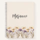 A beige coloured background. Decorated with yellow and purple wildflowers. Personalise and add your name. Grey handwritten style script.