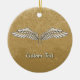 Wide open beige wings illustration. Grunge beige background. Custom text on both sides.