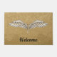 Wide open beige wings illustration. Grunge beige background. Custom text.